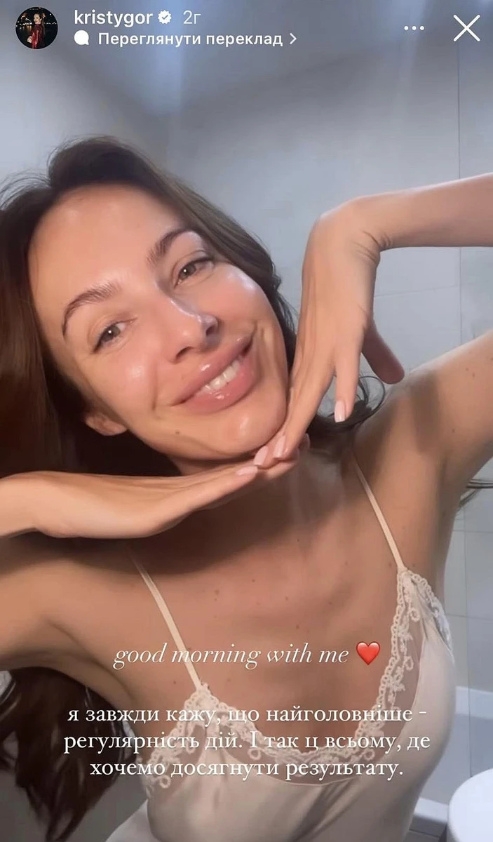"Зазвичай ні. Якщо я не перебільшила з коктейлями. Але, незважаючи на те, що в мене працююча лише одна нирка, моє лице зранку виглядає ось так без зайвих якихось маніпуляцій", - похвалилася Христя.