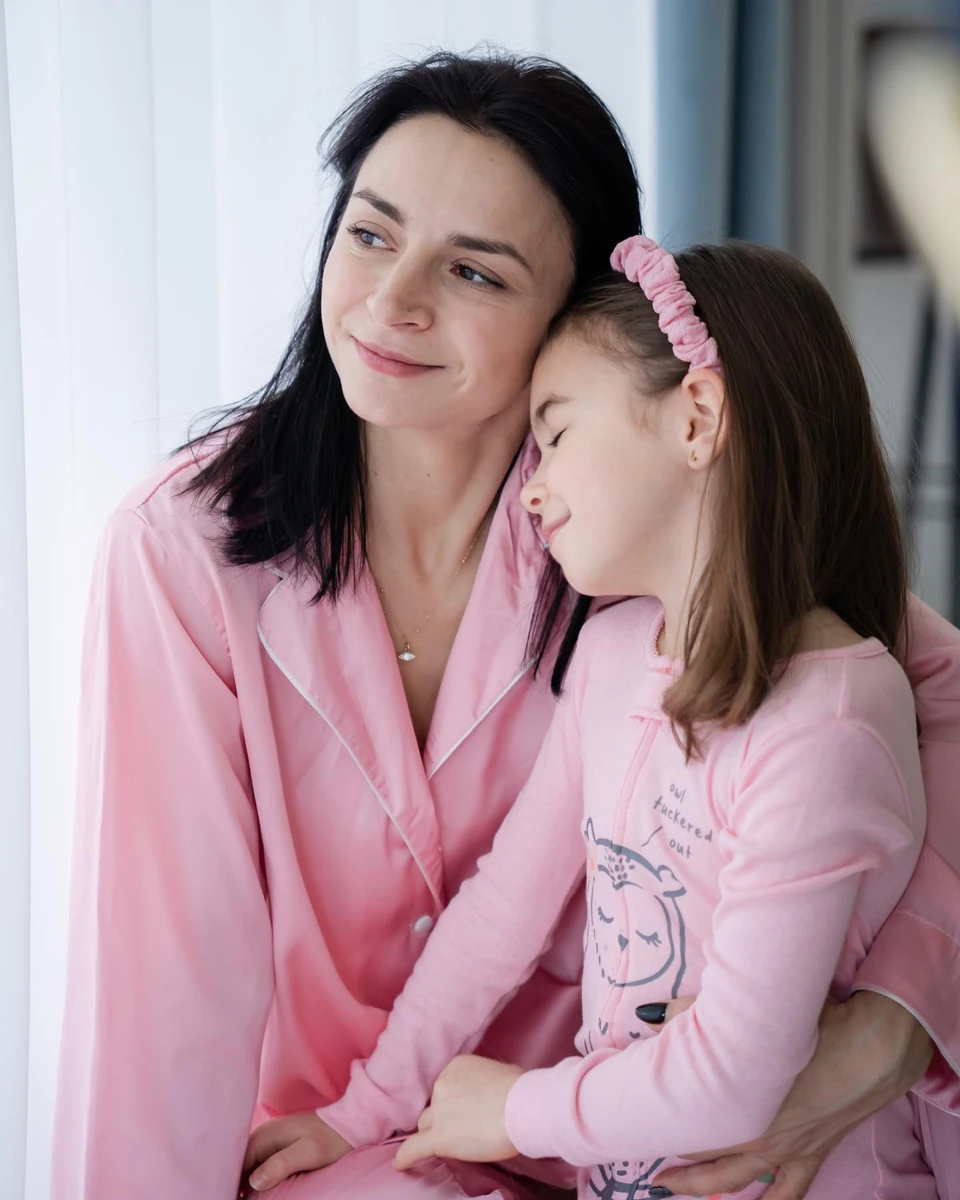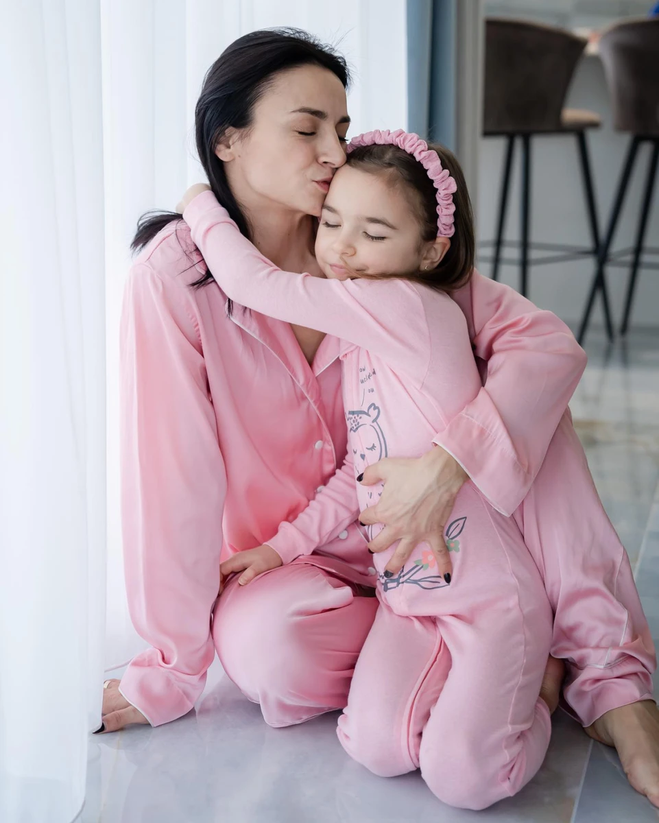 Гвоздьова з донькою в рожевих домашніх луках замилували обіймами і цілунками