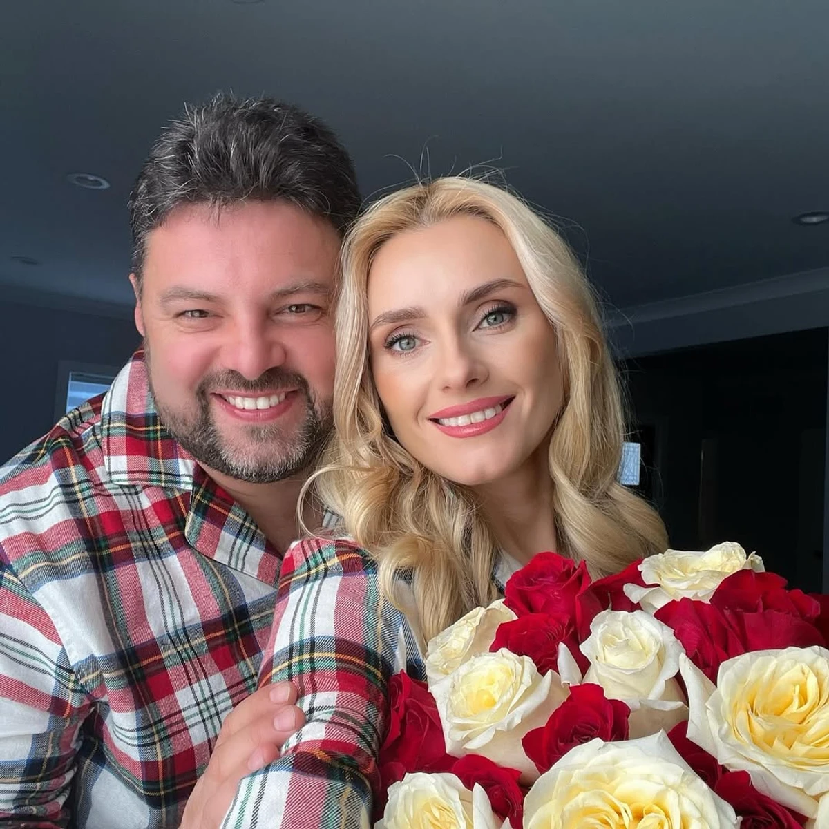 На кадрах вона з Віталієм позують в однакових картатих піжамах та з трояндами.