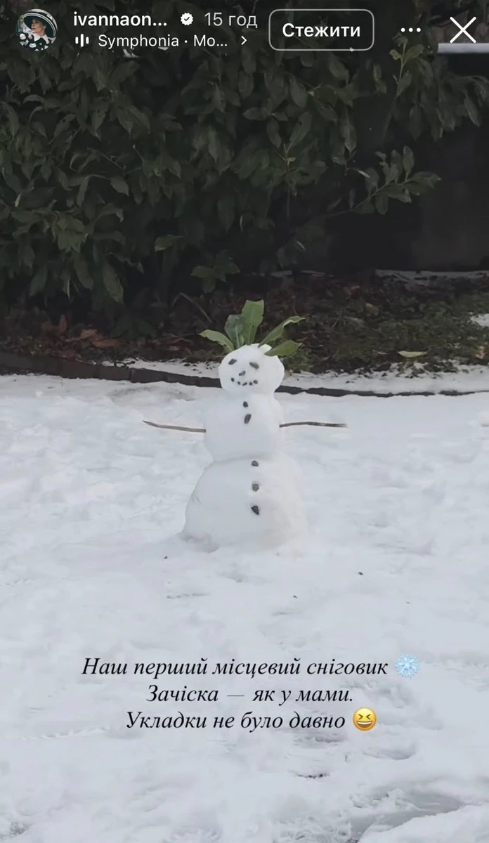 "Не пам'ятаю, коли востаннє ліпила снігову бабу. Певно, ще у дитинстві. Сину сподобалося", - поділилася вона.