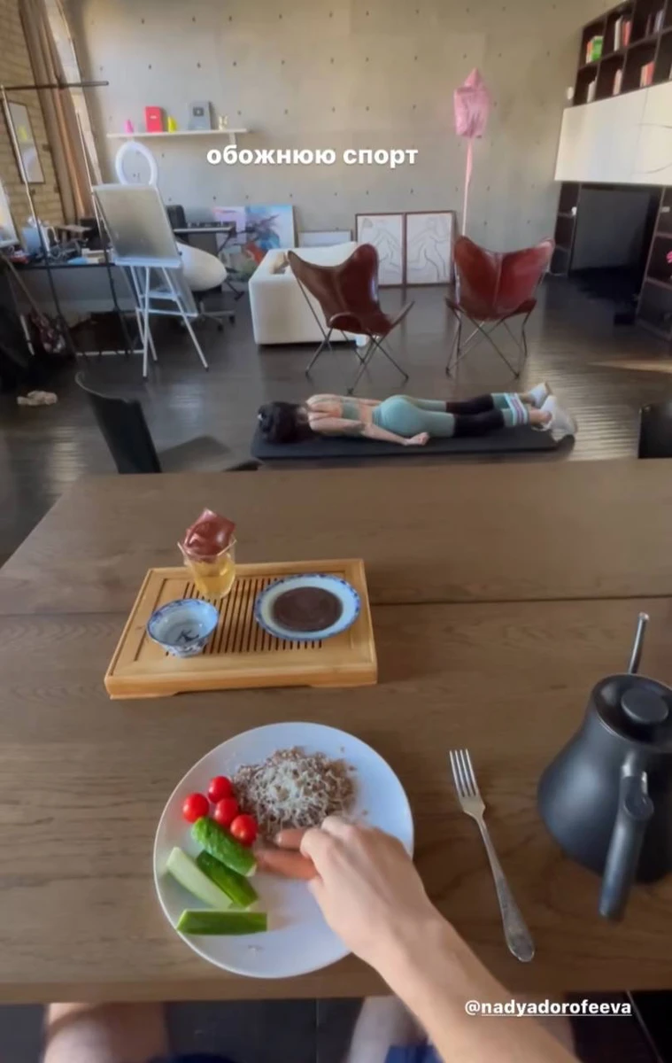 За збігом обставин колишній чоловік Даші, ресторатор Міша Кацурін зняв в Instagram ранок понеділка з дружиною, співачкою Надею Дорофєєвою.