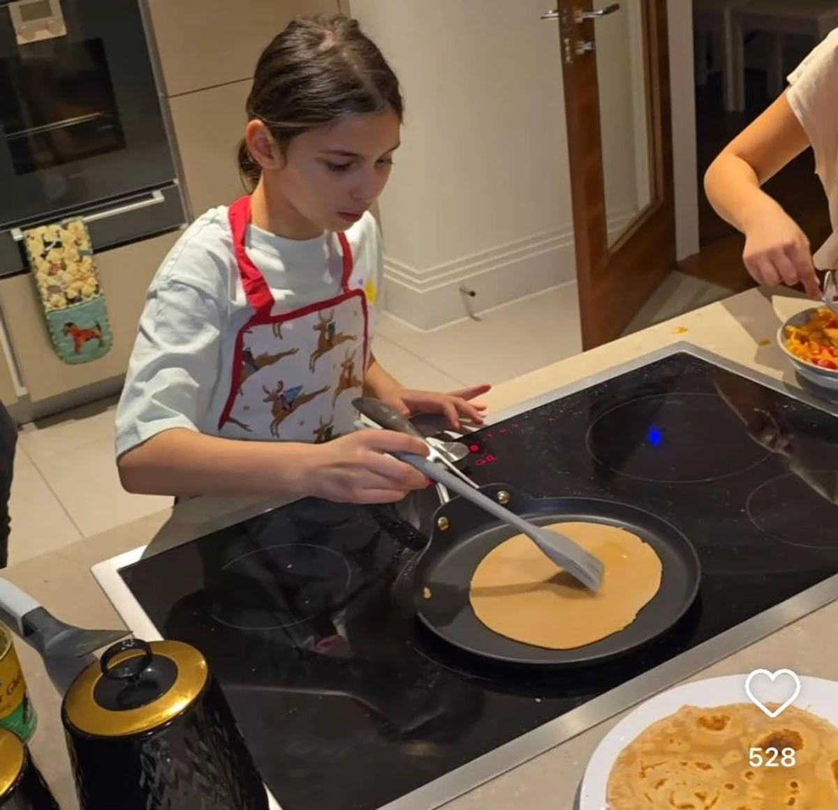 У своєму Instagram артистка виклала миле відео того, як її 10-річні дівчатка готують на кухні щось типу шаурми.