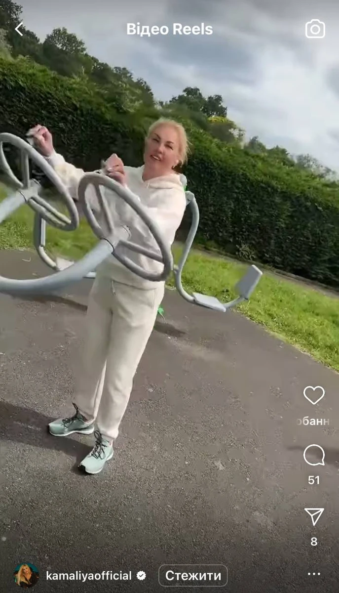У своєму Instagram 47-річна Камалія показала, як займається з колишнім та дітьми воркаутом на тренажерах.