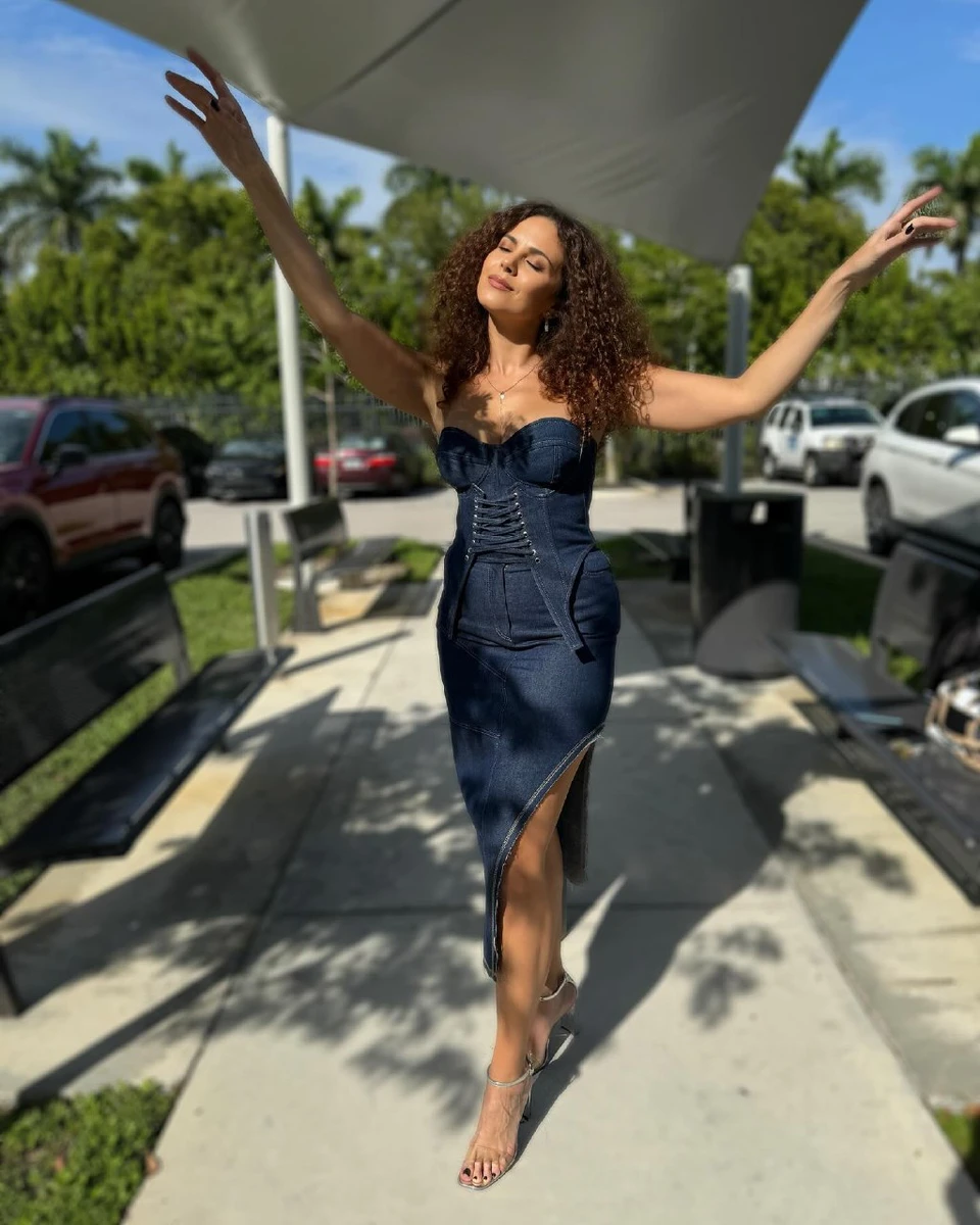 Каменських у джинсовому корсеті погріла пишний бюст під сонцем Маямі