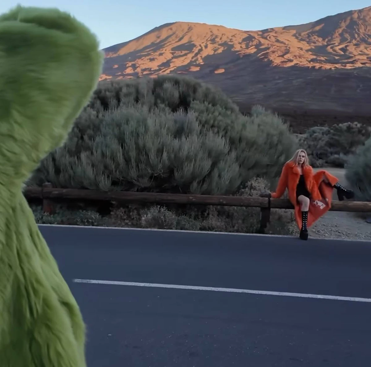 Камінська у вогненно-помаранчевому хутрі ефектно пройшлася на тлі вулкану