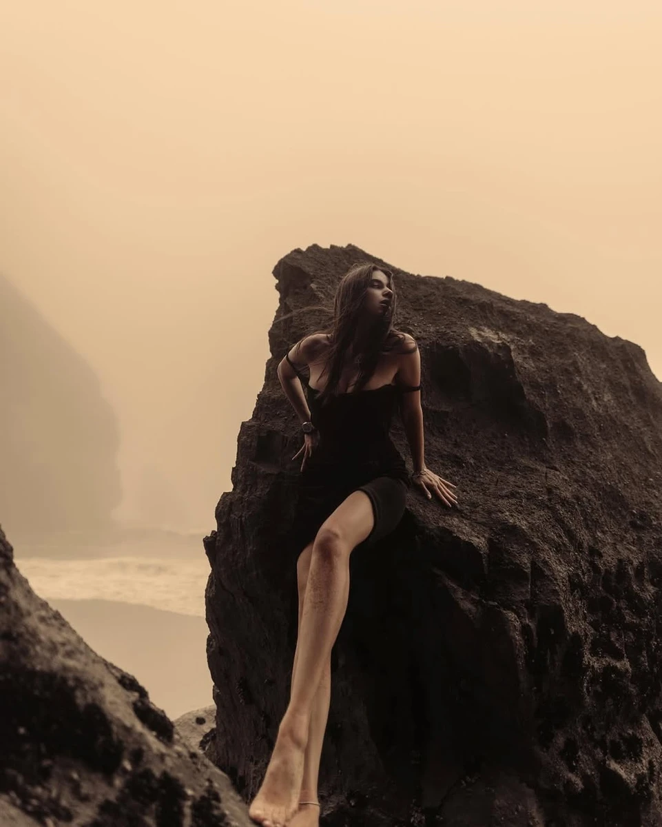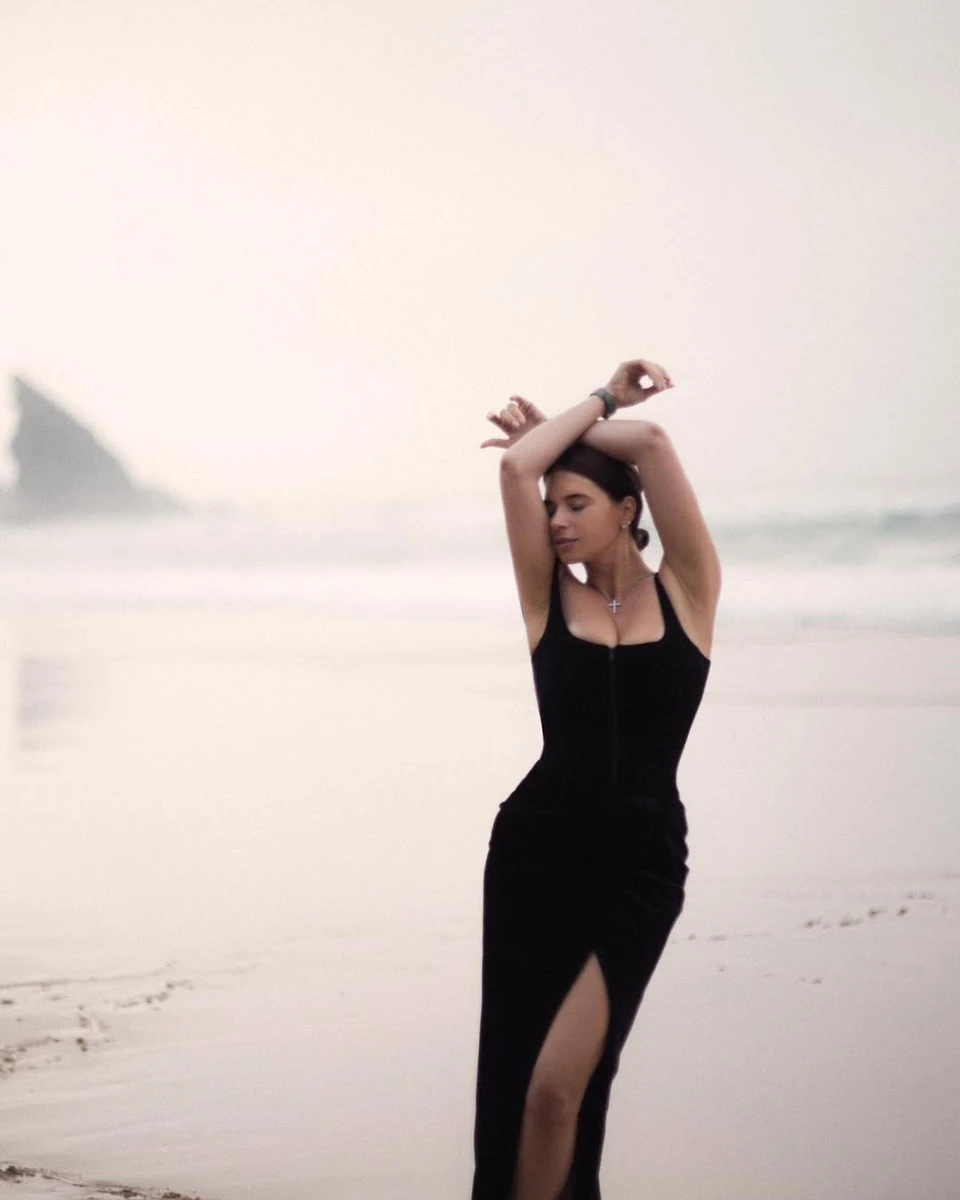 37-річна кохана "царя підкаблучників" позувала на морському узбережжі в романтичній чорній сукні з розрізом, який дозволив помилуватися її стрункими ніжками.