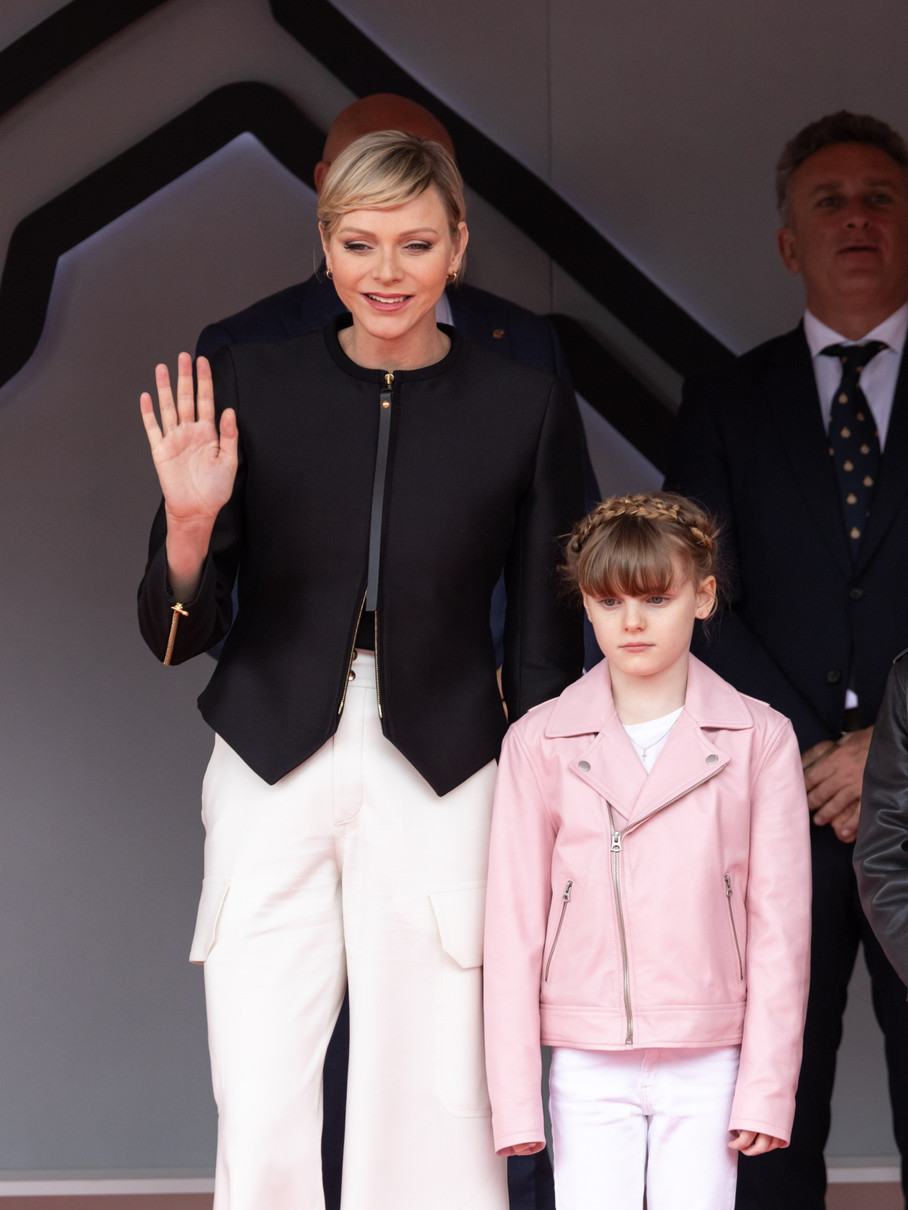 З голови до ніг у Louis Vuitton: княгиня Монако у елегантному луці засвітилася з чоловіком та дітьми у косухах на автоперегонах. Фото