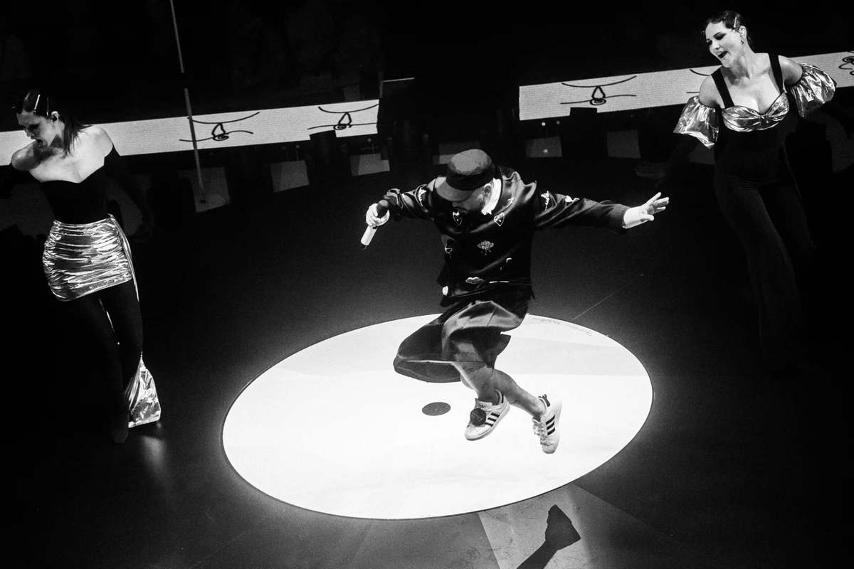 У залі відбулося справжнє дійство: спів у повітрі, сцена у формі платівки, вражаюче лазерне шоу, а також перформери й актори, які на різних поверхах влаштовували імерсійне шоу для кожного рівня глядацького простору.