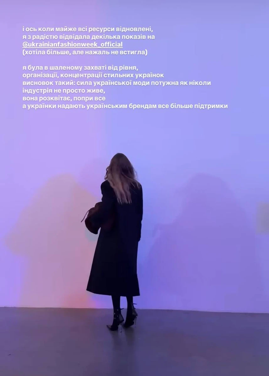 "Востаннє (і вперше) я була на тижні моди 11 років тому. Тоді я тільки переїхала у Київ із Донецька і починала нове життя. Батько Давида знайомив мене зі світом Києва, і все для мене було в новинку. Далі графіки були настільки щільні, що бути фізично присутньою не виходило, але я відслідковувала всі колекції онлайн, дуже люблю українських дизайнерів і 80% мого гардеробу складають саме їхні речі", - розповіла Барановська.