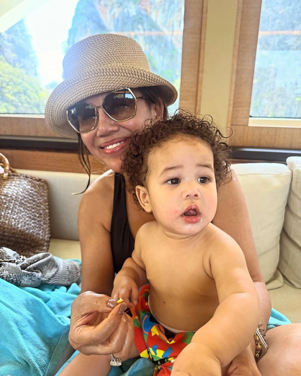 На знімках модель позує на яхті у купальнику та тримає на руках свою молодшу дитину. На фото Тейген у чорному роздільному купальнику, який демонструє, як змінилося тіло моделі після третіх пологів.
