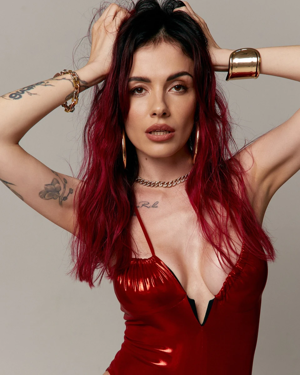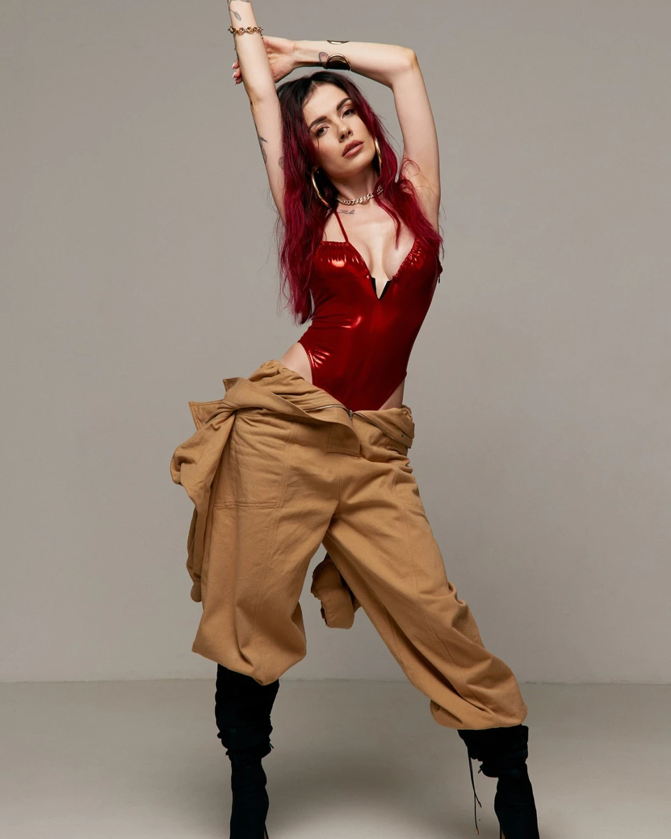 35-річна співачка MamaRika (вона ж Анастасія Середа) показала свої улюблені фото у декольтованому червоному боді.