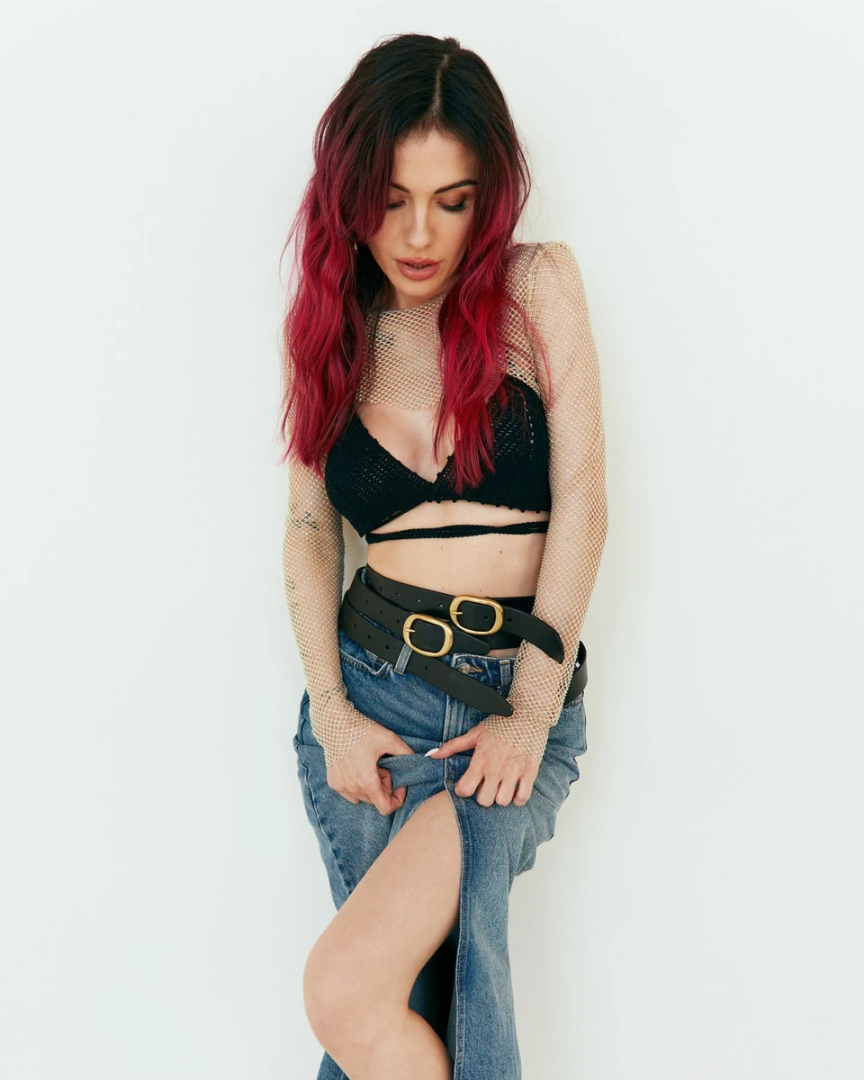MamaRika у плетеному ліфі та з ременями на талії поспокушала жіночними вигинами. Фото