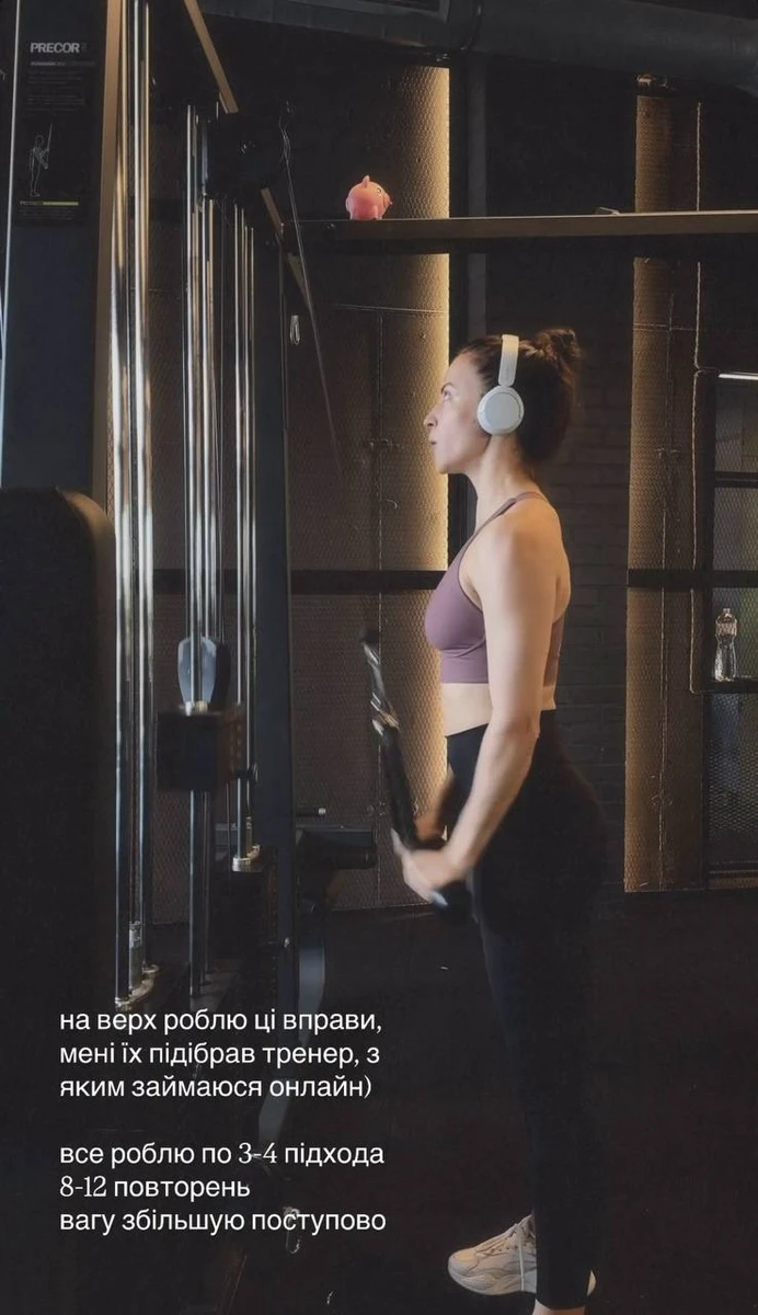 "Приємно, капець. Враховуючи, що я не тренувала верх 2 тижні через біль у шиї", - поділилася блогерка