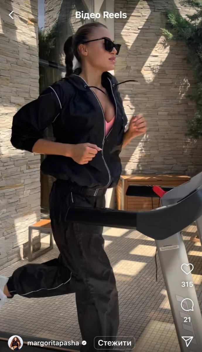 На мотивуючих кадрах 29-річна Маргарита демонструє свої шість кубиків преса у рожевому топі та чорних спортивних штанах. Потім володарка звання "Міс Україна"-2019 показала, як займається на біговій доріжці.