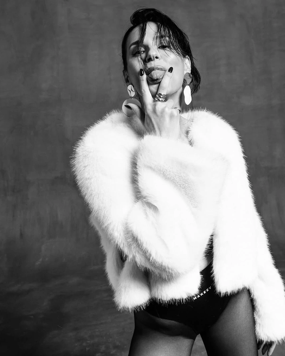 Свої роздуми на цю тему зірка в Instagram проілюструвала зухвалими чорно-білими кадрами. 45-річна Маша постала перед камерою у спідньому, колготах та хутряних напівшубках.