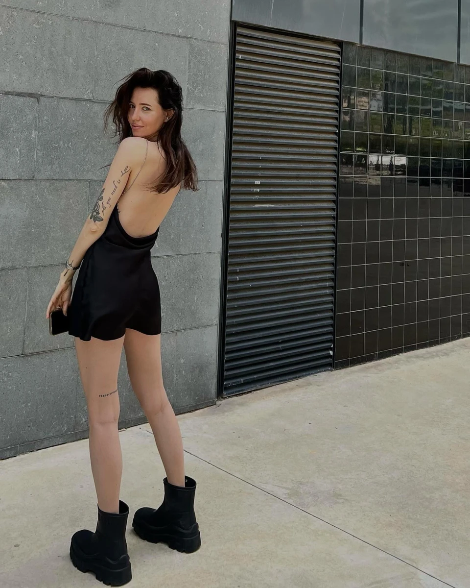 Дорофєєва у чорному міні посвітила тендітним тілом з різних ракурсів
