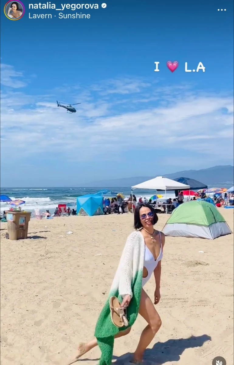 У відео 49-річна Наталія в монокіні пробіглася пляжем Лос-Анджелеса і висолопила на камеру язика.