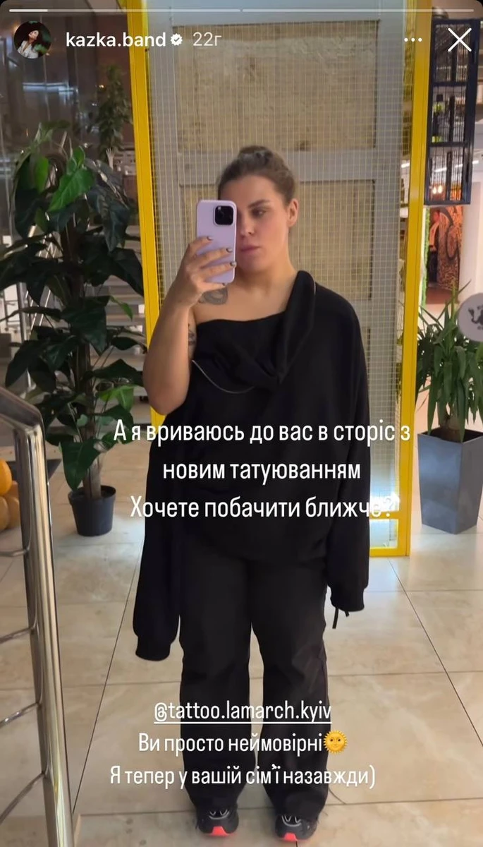 "А я вриваюсь до вас у сторіс з новим татуюванням. Хочете побачити ближче?". - поцікавилася зірка у підписників.
