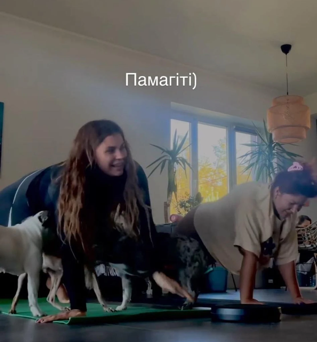 Солістка гурту Kazka Олександра Заріцька насмішила мережу відео, де вона намагається стояти в планці у компанії трьох песиків.