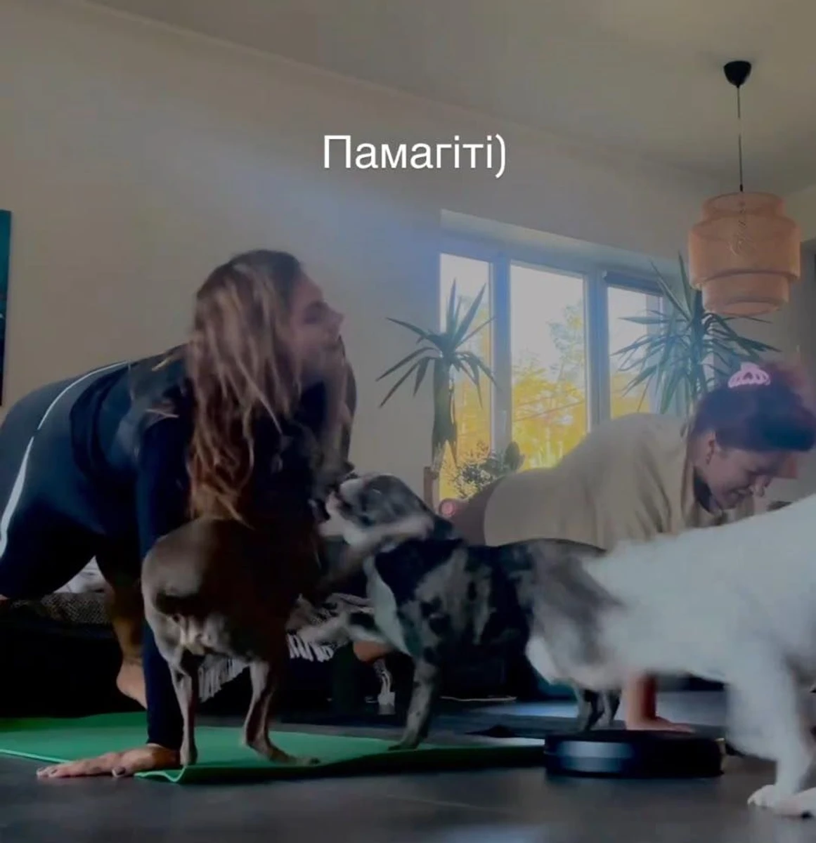 Саша записувала своє тренування в домашніх умовах, і песикам закортіло їй допомогти.