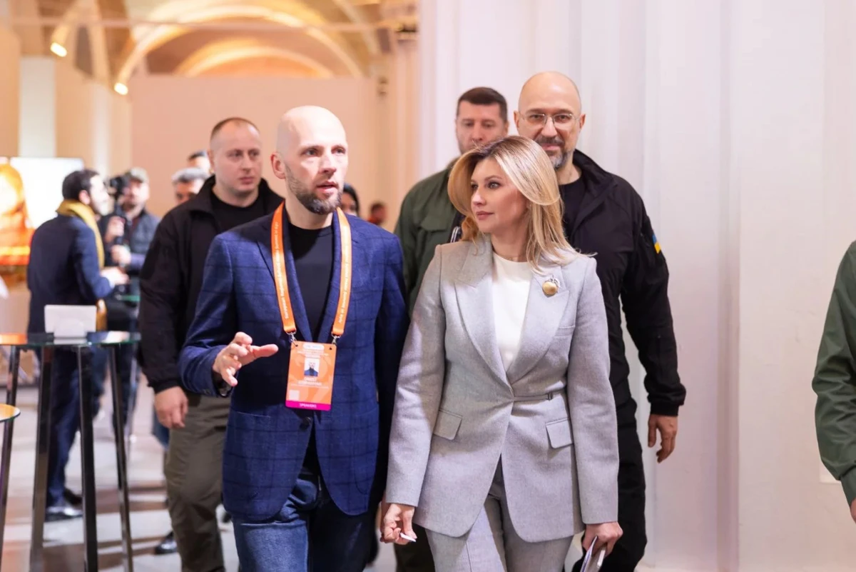 Зеленська в сірому костюмі і з фруктом на грудях виступила на саміті в Києві
