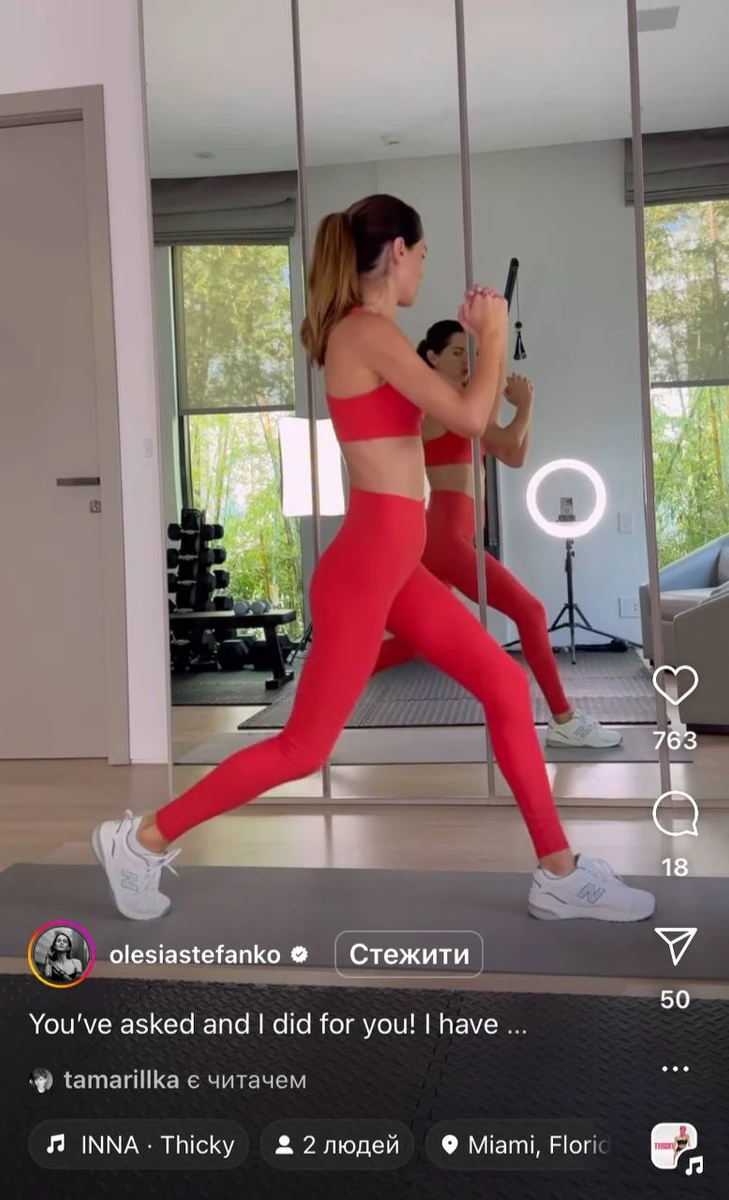 "Міс Україна Всесвіт" - 2011 Олеся Стефанко у своєму Instagram поділилася кількома вправами, завдяки яким вона підтримує своє тіло у тонусі.