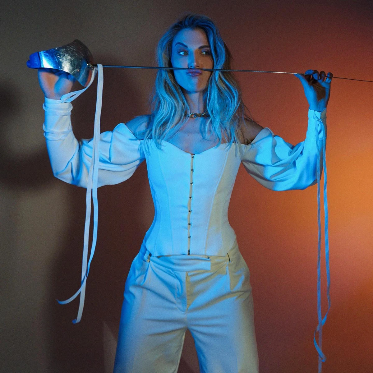 Харлан у білому корсеті ефектно приборкала свою шаблю. Фото