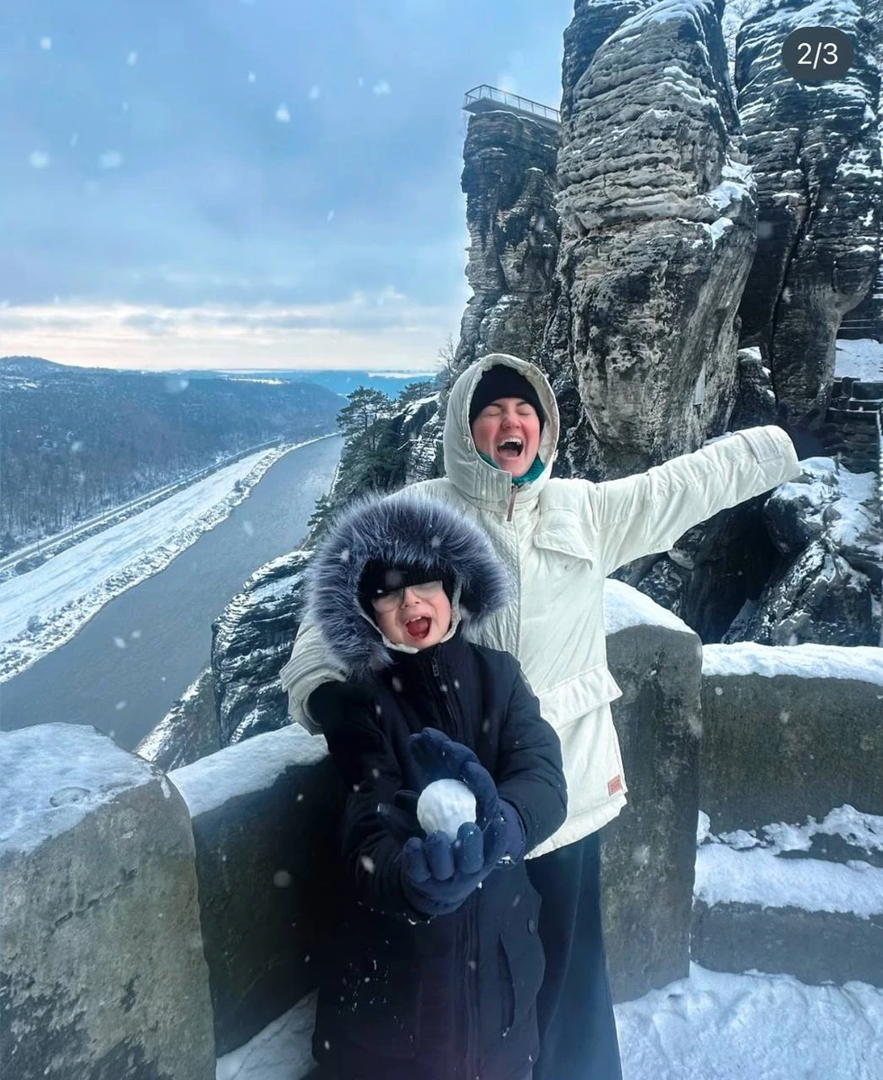 Закутана Цибульська з сином у горах Німеччини згадала, як вірила у Святого Миколая