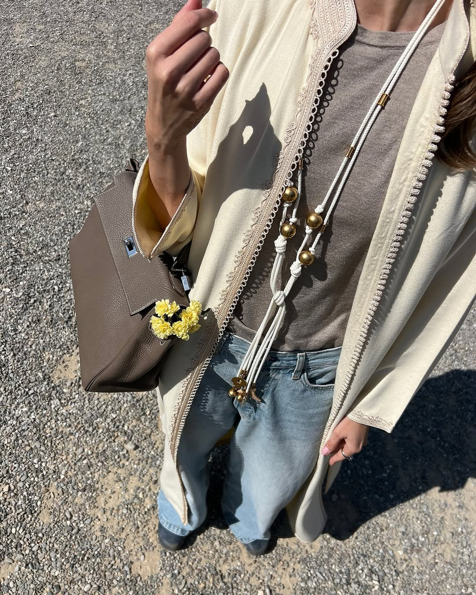 Також на Соні були джинси вільного крою і футболка. Свій лук вона доповнила біло-золотим намистом і сумкою від Hermes.