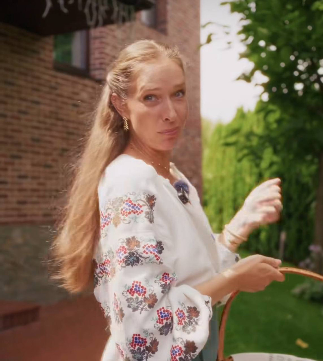 Осадча в ошатній вишиванці зібрала кошик на Яблучний Спас у своєму фруктовому саду. Відео