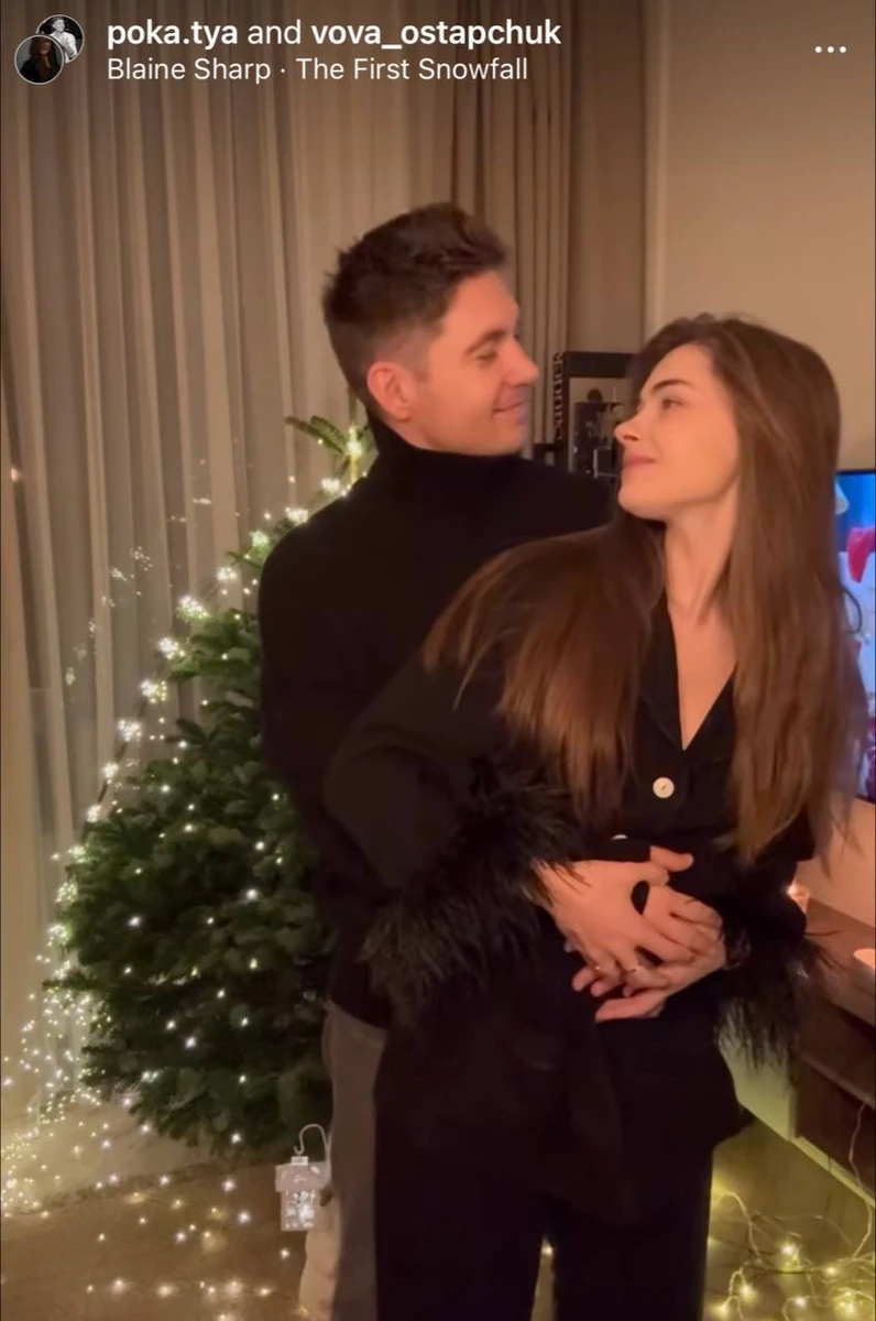 Остапчук з дружиною поцілувалися на камеру коло прикрашеної ялинки. ВІДЕО