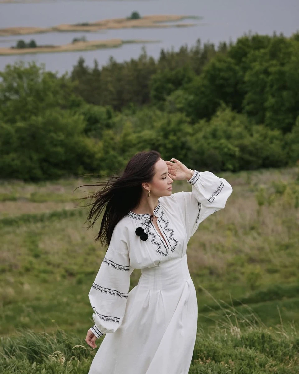 Парфільєва з чоловіком у чорно-білих вишиванках показали романтику на схилах Дніпра