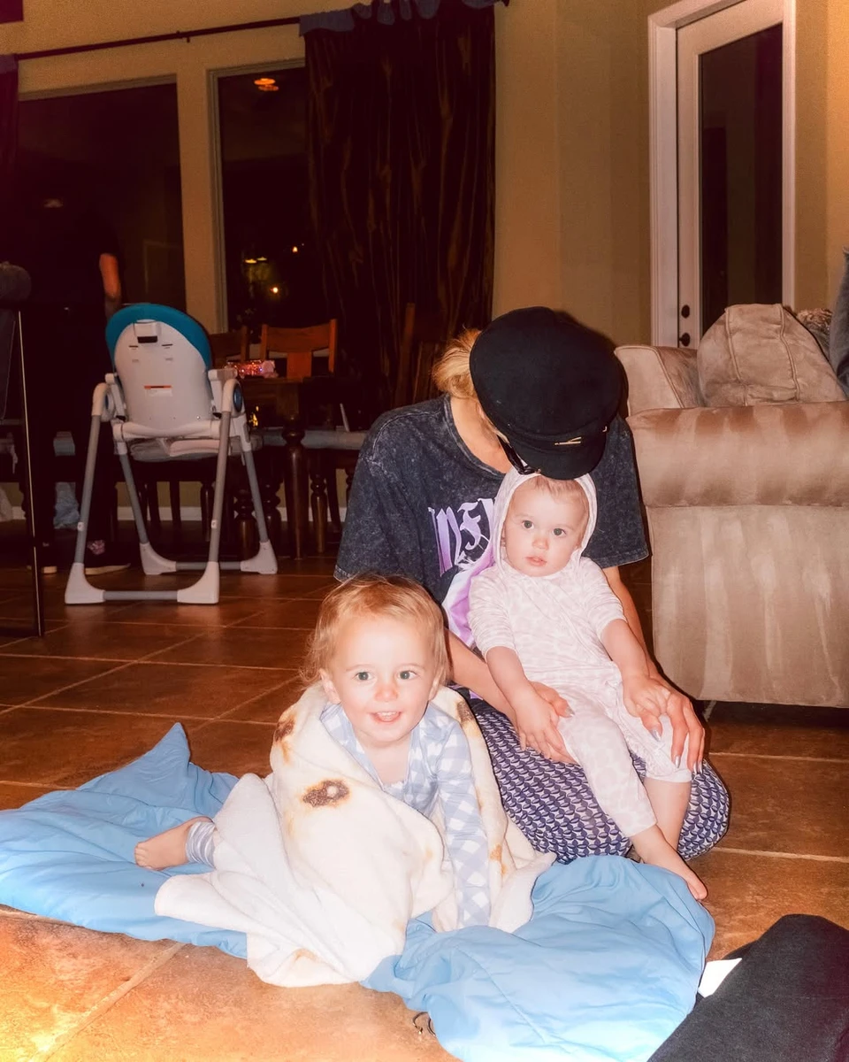 На фото Хілтон закарбувала, як її 2-річний Фенікс і 1,5-річна Лондон побавилися під ковдрою із зображенням мами.