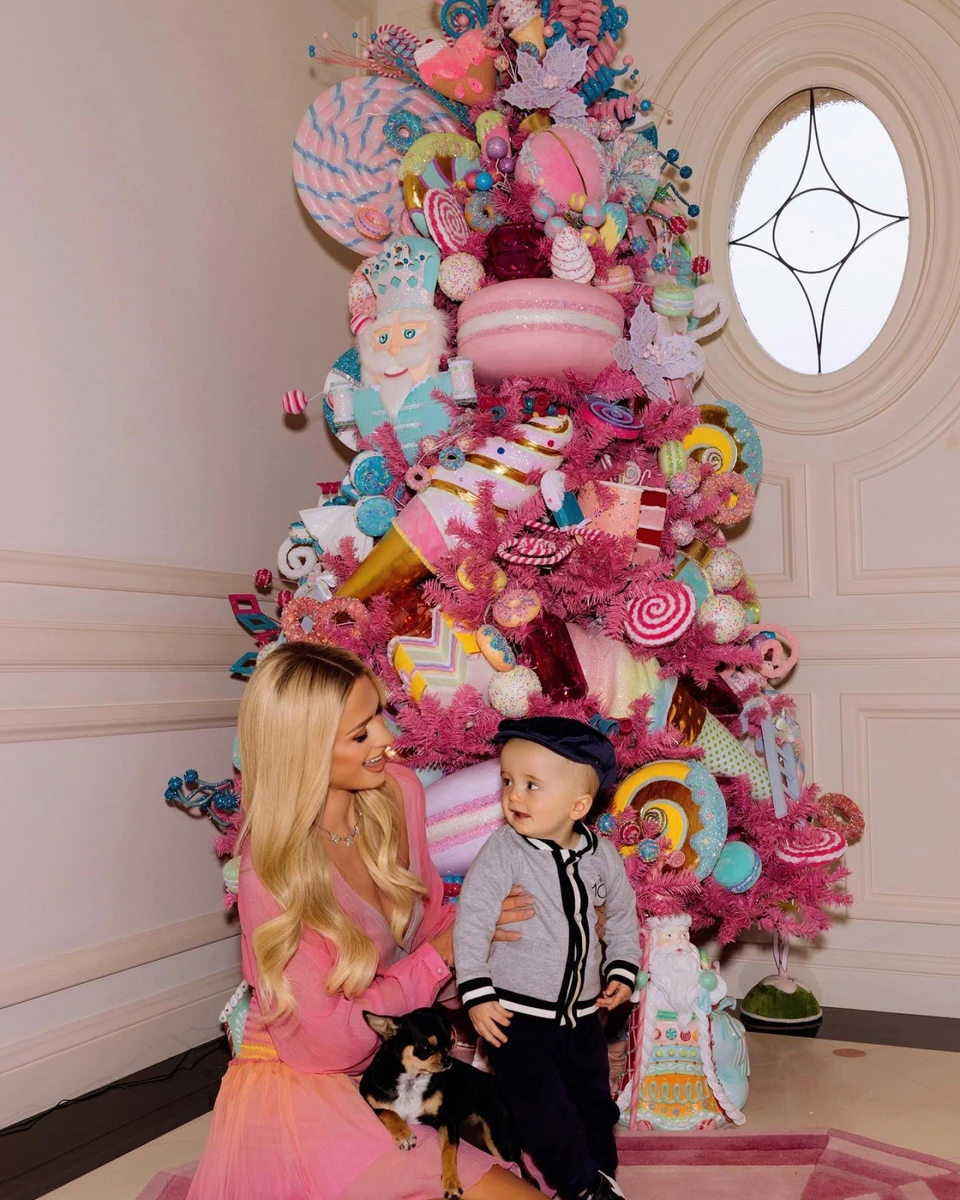 Рожевого багато не буває: Хілтон з сином і своїм портретом попозувала на тлі солодких ялинок