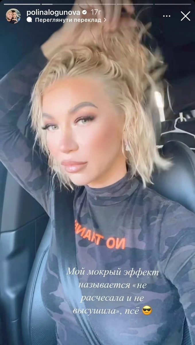 Перед фоловерами вона. ймовірно, показалася одразу після зміни образу в машині. Її волосся було ще мокрим.