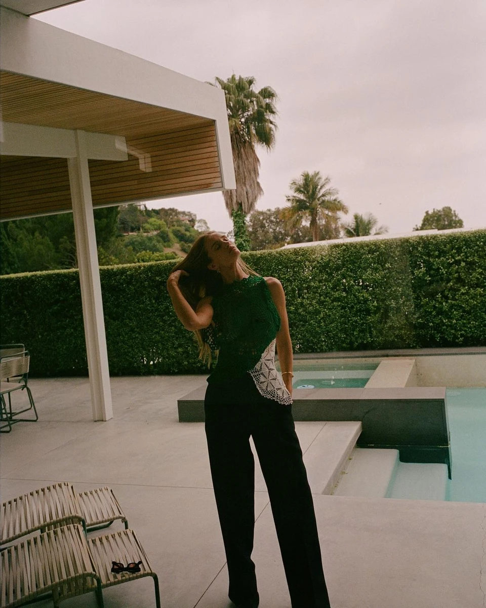 Наречена 56-річного британського актора Джейсона Стейтема фотографувалася у кількох образах: в довгій обтислій сукні білого кольору, у спідниці довжини максі та куртці оверсайз у хижий принт на голе тіло й у мереживному топі та штанах у зеленому відтінку.