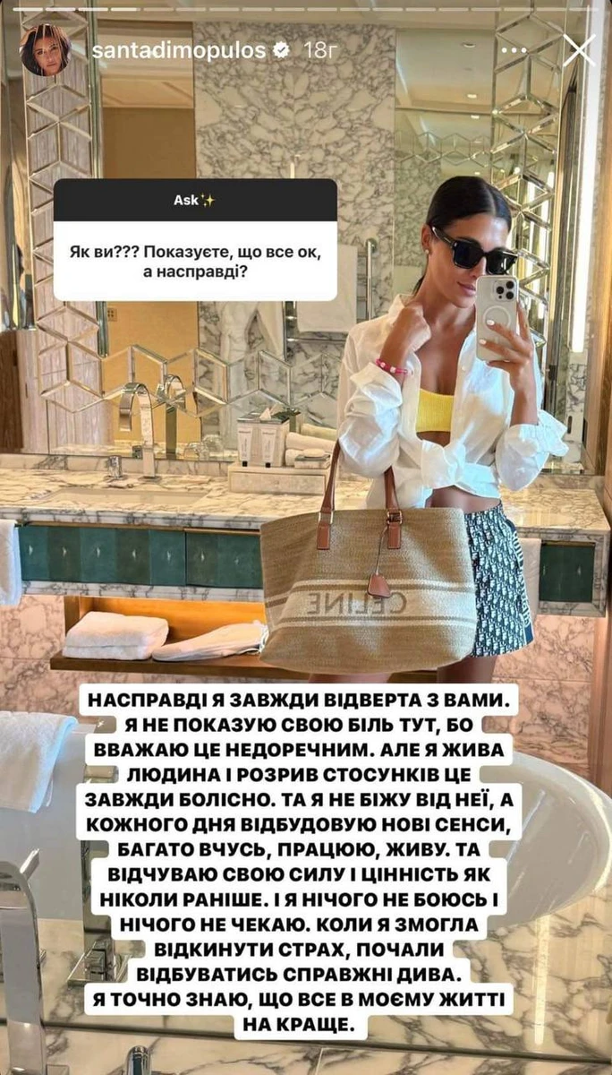 Нагадаємо, нещодавно Санта Дімопулос оголосила про розлучення зі своїм чоловіком, бізнесменом Ігорем Кучеренком після 11 років шлюбу.