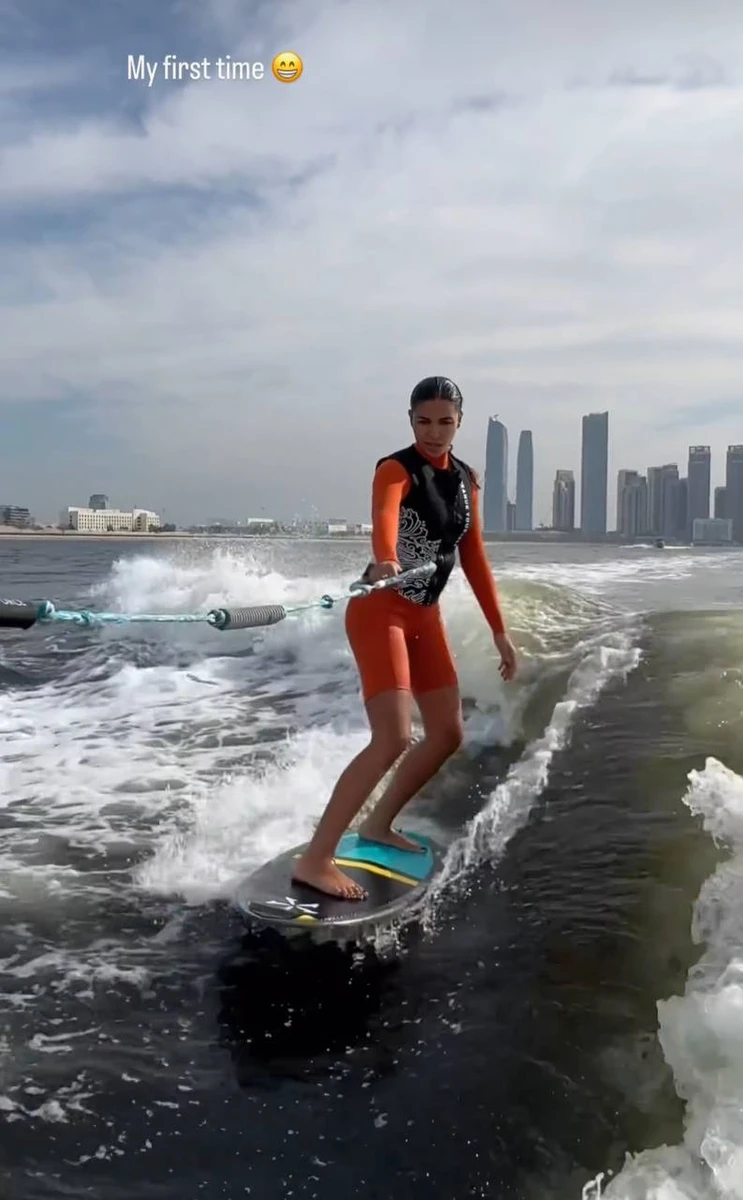 В своєму Instagram 36-річна Санта показала, як вперше спробувала вейксерфінг.