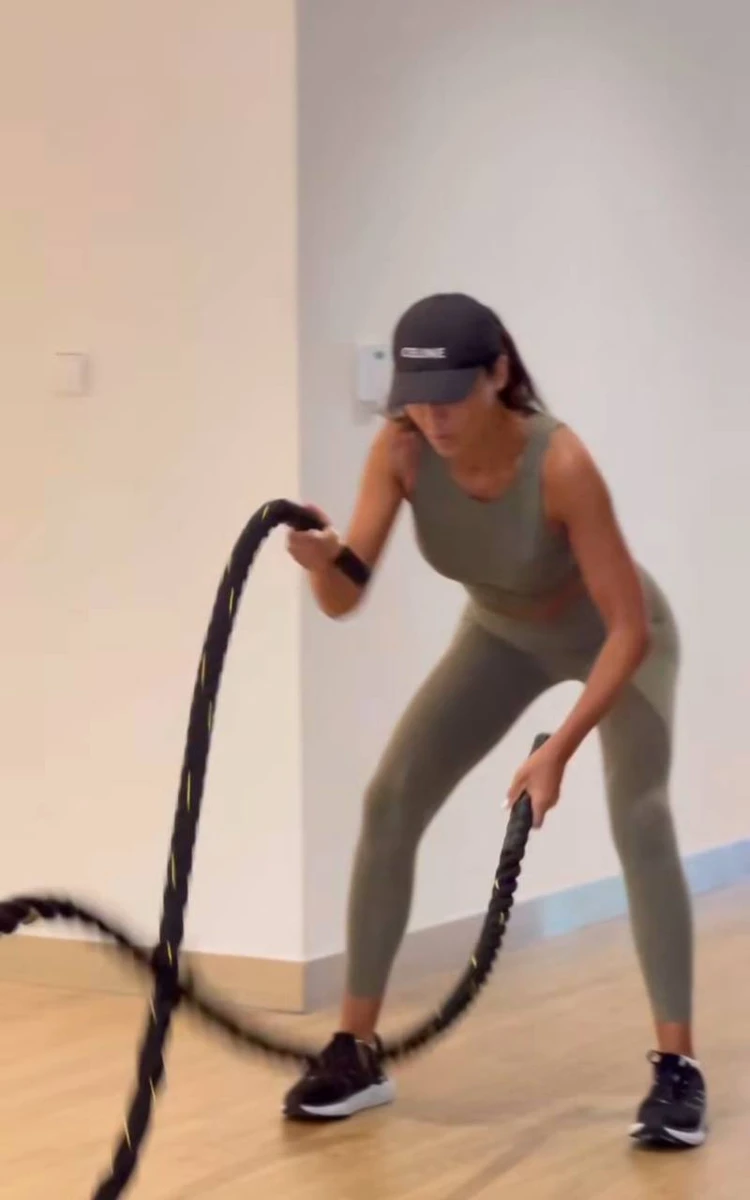 Дімопулос у лосинах і топі показала планку і вправу з канатами