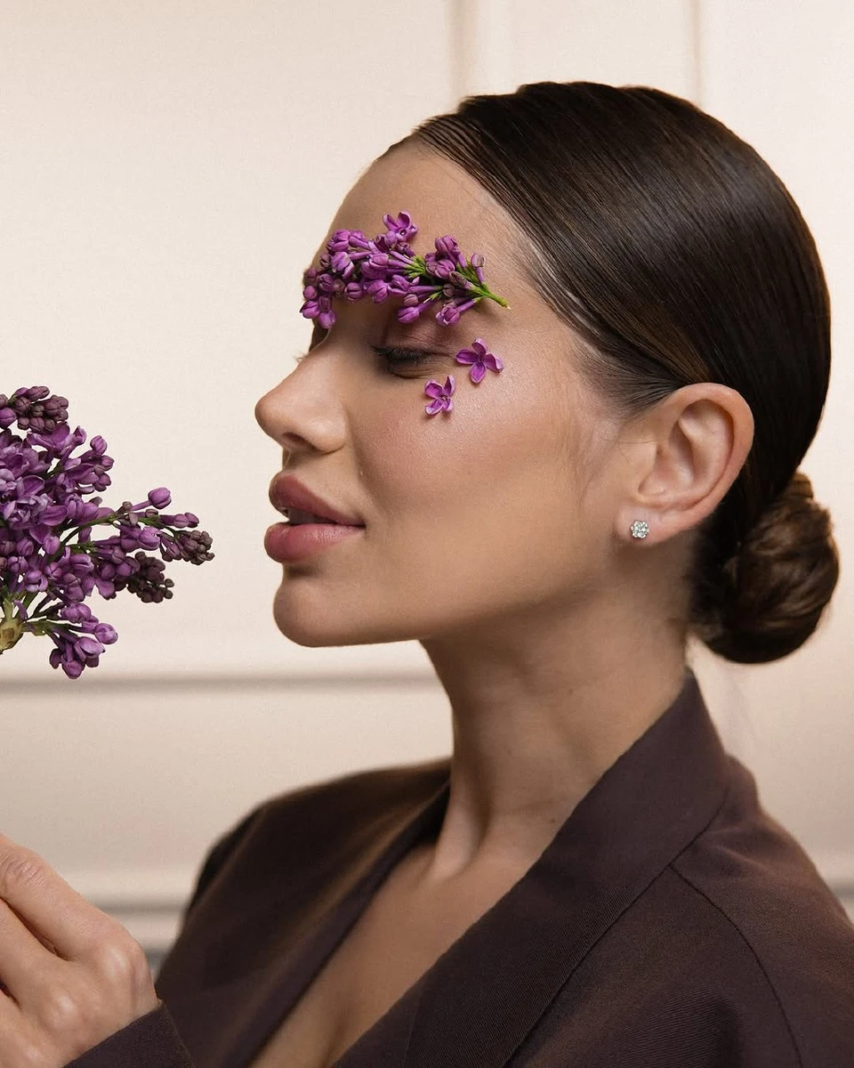 Бузковий мейкап: Саша Бо з квітами на обличчі здивувала весняним фотокреативом