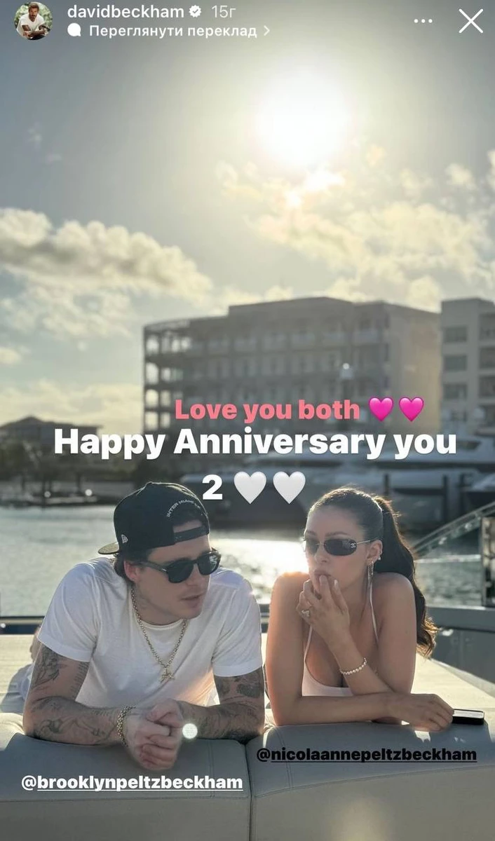 10-го квітня первісток Девіда та Вікторії Бекхем Бруклін та його дружина, дочка американського мільярдера Нельсона Пельтца Нікола відзначають 2-гу річницю шлюбу.