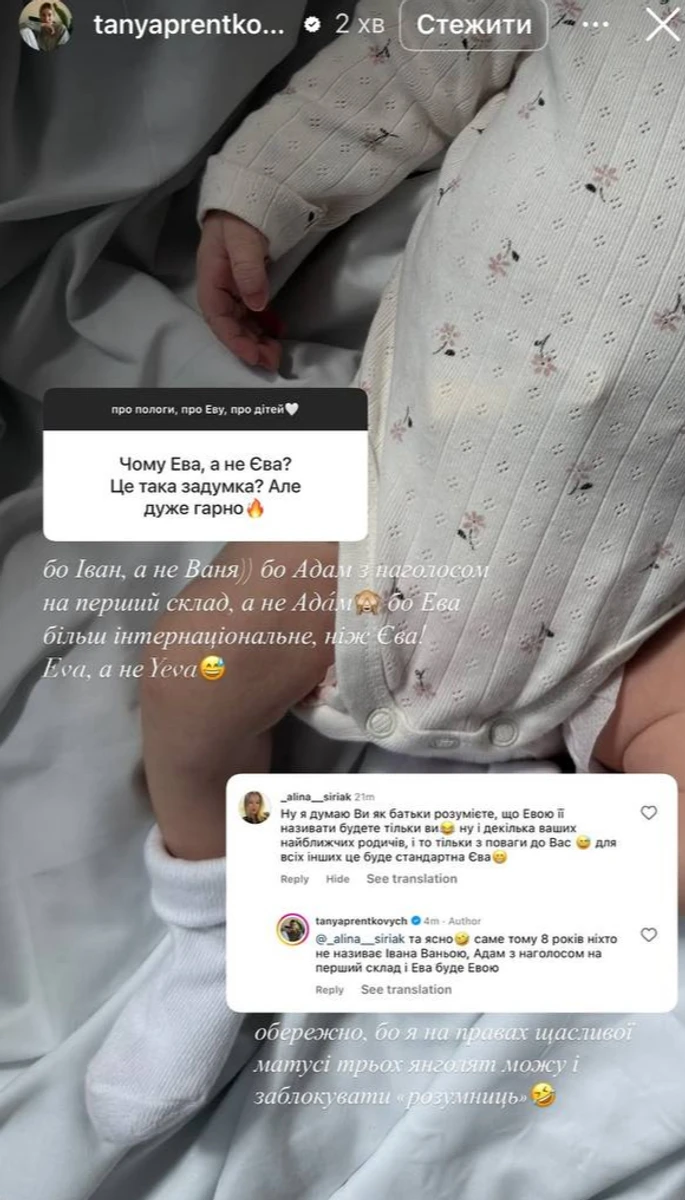 Пренткович додала, що ім'я дівчинки починається саме з "Е", а не "Є".