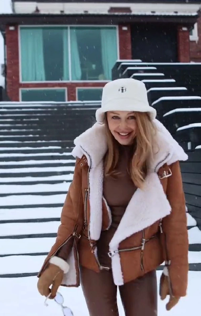 Кароль у шкіряних штанах і дублянці влаштувала танці на снігу і граційне падіння. ВІДЕО