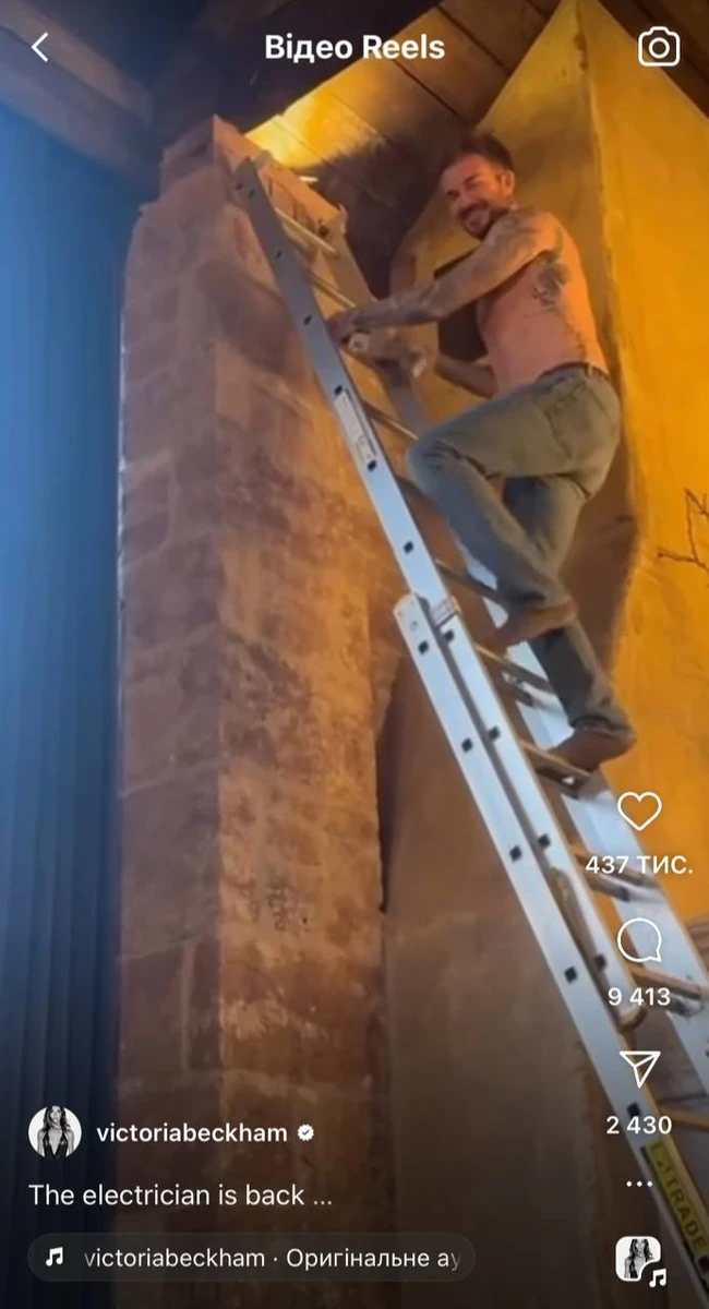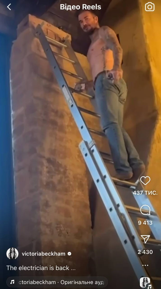 Вікі зняла на камеру, як Бекхем піднімається по драбині. Робить це він з голим торсом.