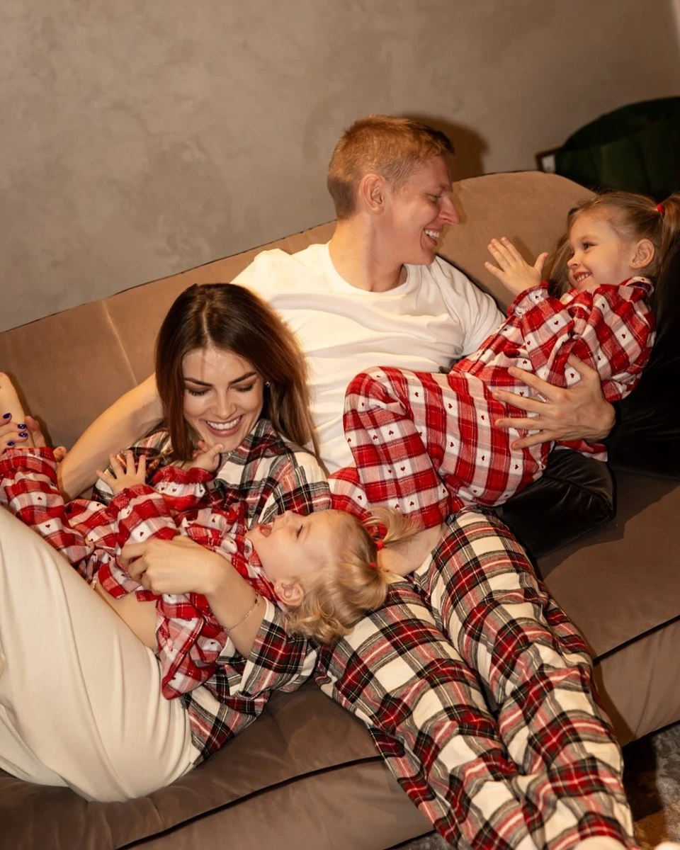 Для затишних фото Зінченки обрали картаті піжами, які вдягнули навіть на песиків.