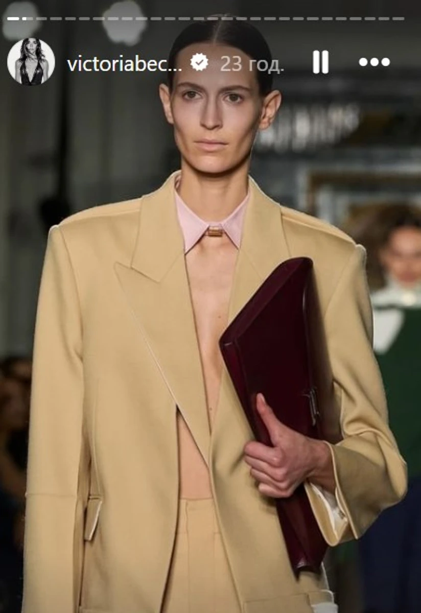 Стримана класика, яка дозволяє більш тонко переносити повсякденні речі. Клатчі-конверти з’являться навесні 2024 року не лише для вечірніх виходів. Вікторія Бекхем, яка напередодні зламала ногу, обрала саме такий аксесуар для свого показу.