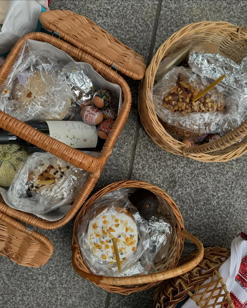Також вона показала, що ставила у кошик для освячення. Ліза з дітьми принесли до собору панетони, яйця, вино та фрукти.