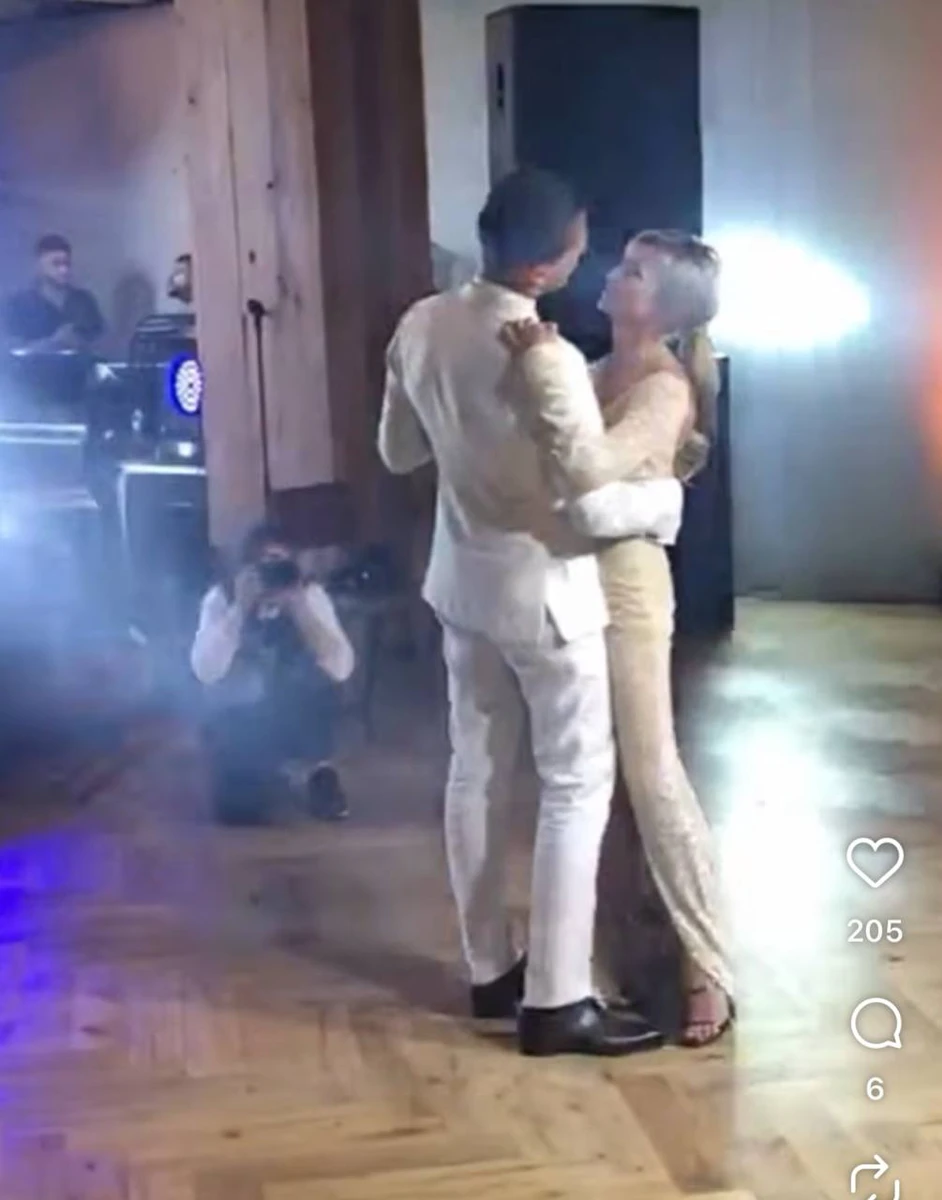 "Я тебе кохаю. Найкраще рішення мого життя — сказати тобі "так". З річницею весілля, кохання мого життя, мій найкращий друг, мій партнер у всьому, моє "все". Жодні слова ніколи не зможуть описати, наскільки глибоко я тебе кохаю. Можливо, це звучить наївно, але я справді хочу бути вічність із тобою.