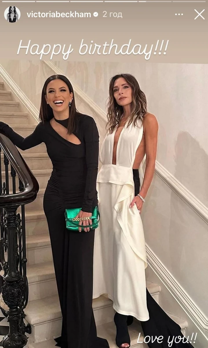 А от найближча подруга Лонгорії, британська дизайнерка Вікторія Бекхем, вочевидь, не змогла приїхати на вечірку, тож привітала її у своєму Instagram спільними фото.