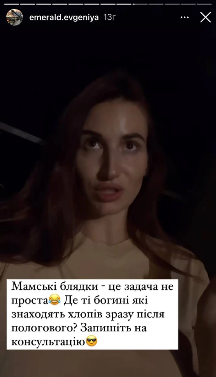 У своїх сторіс Емеральд, вочевидь, вирішила відповісти хейтерам на закиди про те, що вона погана мати у жартівливій формі. Євгенія влаштувала підписникам ціле шоу, яке назвала "Шльондра-мати день".